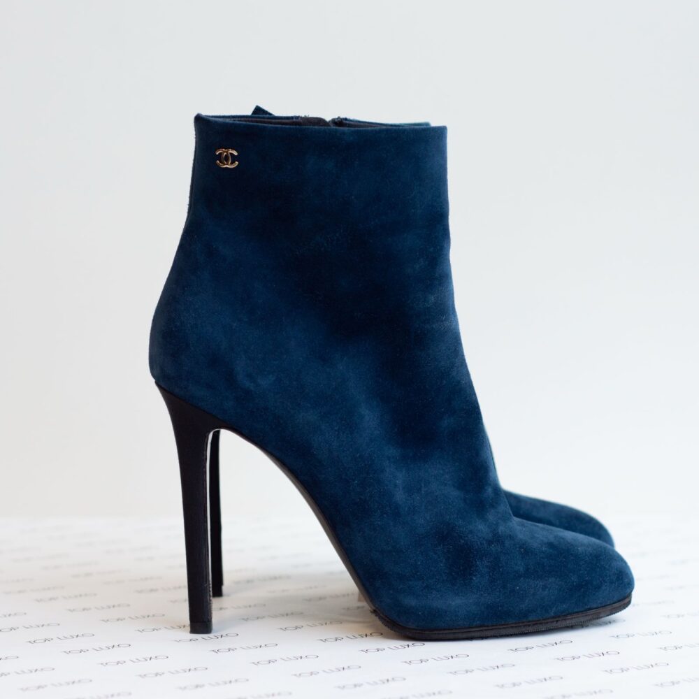 36 Bota Chanel camurça azul marinho